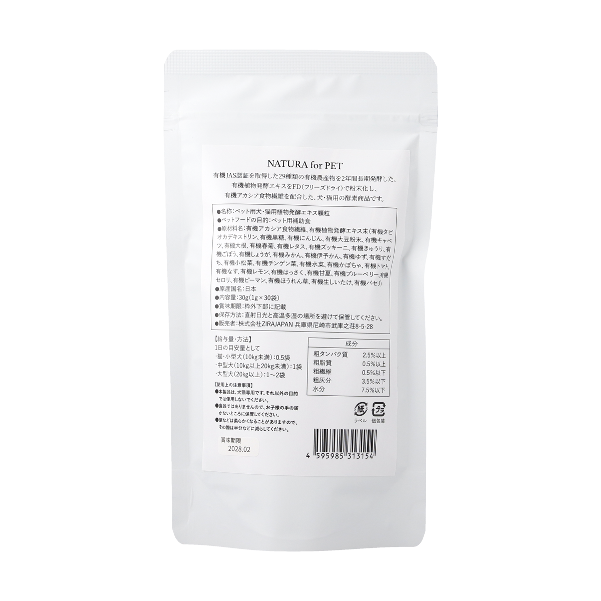 【NATURA for PET |犬猫用酵素パウダー 1g×30包】